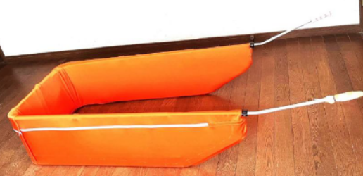大きな防水シートとコの字型の外枠を組み合わせることで、ベッド上に簡易浴槽を作り出すことができます。