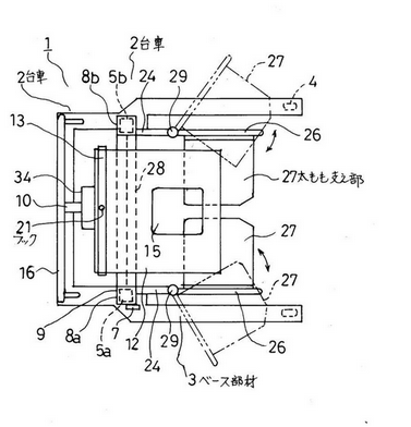 In the patent, the problems described for conventional transfer devices that use a lever mechanism include points such as: “lifting is required,” “the caregiver must apply force during operation,” and “stability is insufficient.”