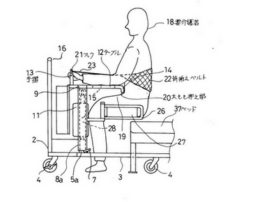 Because this lifting motion is motor-driven, the caregiver does not need to apply physical lifting force. The patent also indicates that reducing the caregiver’s physical burden is a major objective.