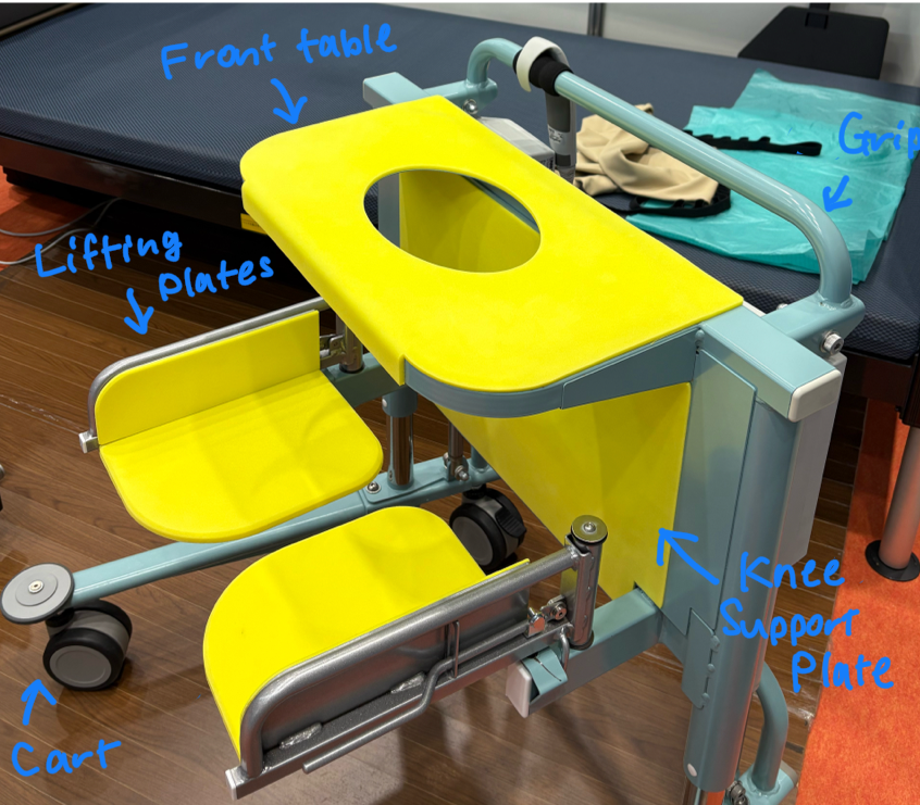 - Lifting Plates (Thigh Support Section): Plates that slide in from both sides under the thighs and lift the body.