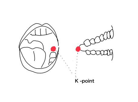 The K-point refers to an area on the inner side of the posterior margin of the retromolar trigone (the region just behind the last lower molar).