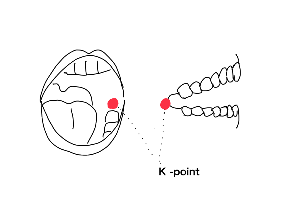 K-pointは口腔内の臼後三角後縁のやや後方の内側にある部位のことを指します。