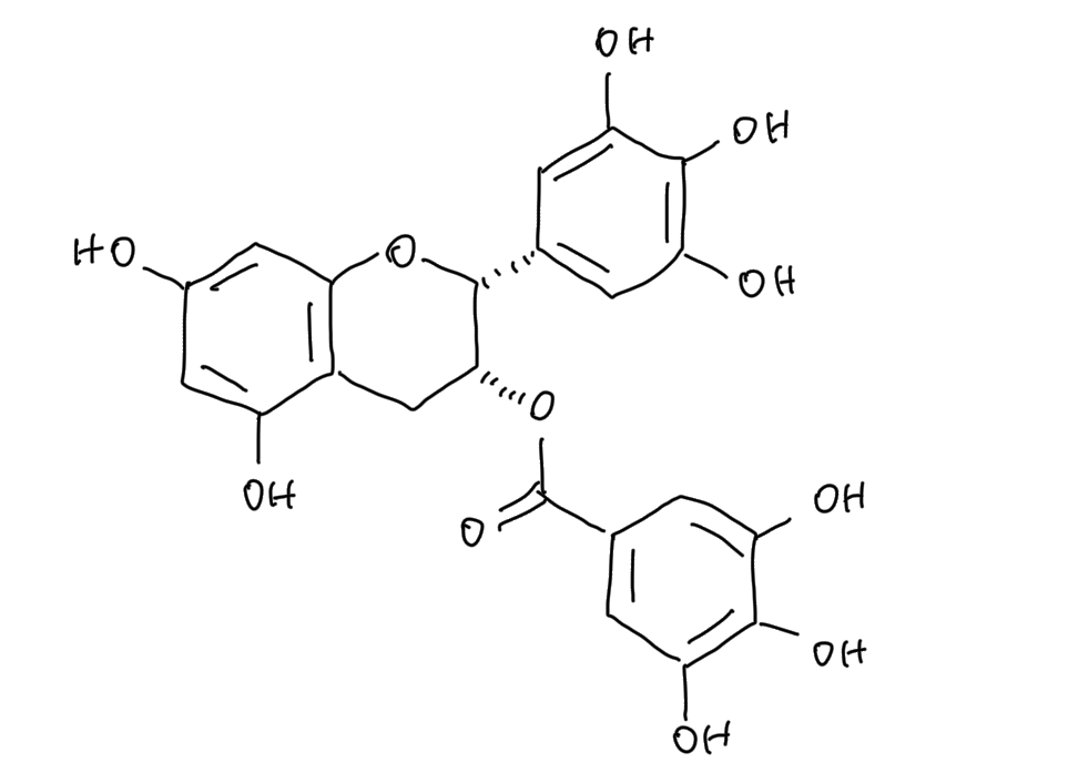 EGCGは、フリーラジカルに作用しやすい化学構造を持ち、研究において抗酸化的な作用が報告されています。